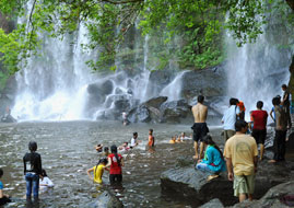 The Kulen Mountain or Phnom Kulen is declared as a National Park. It is an isolated mountain massif located in Svay Leu District and some 48km from Siem Reap. Its highest point is 487 meters.