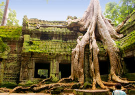 Unlike most Angkorian temples, Ta Prohm has been left in much the same condition in which it was found where the photogenic and atmospheric combination of trees growing out of the ruins and the jungle surroundings have made it one of Angkor’s most iconic temples with visitors.