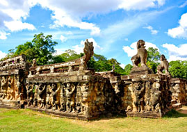 The Terrace of the Elephants is part of the walled city of Angkor Thom. The terrace was used by king Jayavarman VII as a platform from which to view his victorious returning army.
